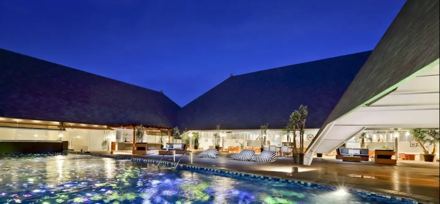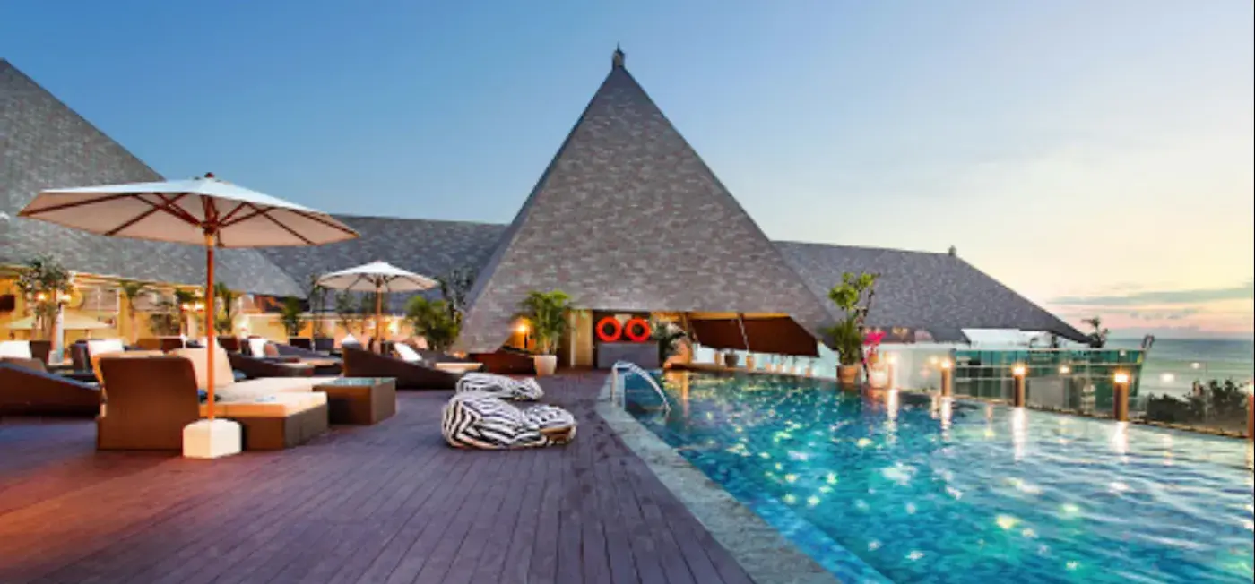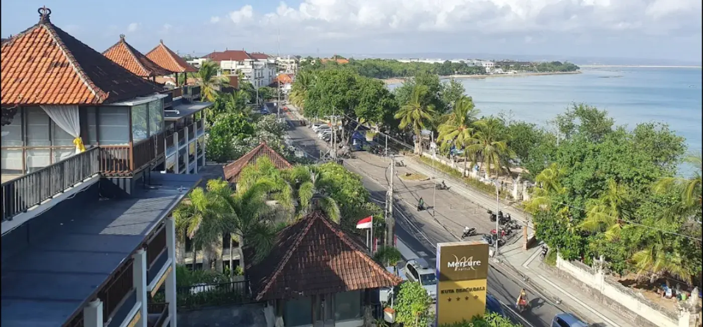 The Kuta Beach Heritage Hotel is a 5-star hotel located in the heart of Kuta, Bali, Indonesia. It is situated just a stone's throw away from the famous Kuta Beach, one of the most popular beaches in Bali. The hotel is also conveniently located near various shopping and entertainment areas, making it an ideal choice for travelers who want to explore the vibrant and bustling area of Kuta.