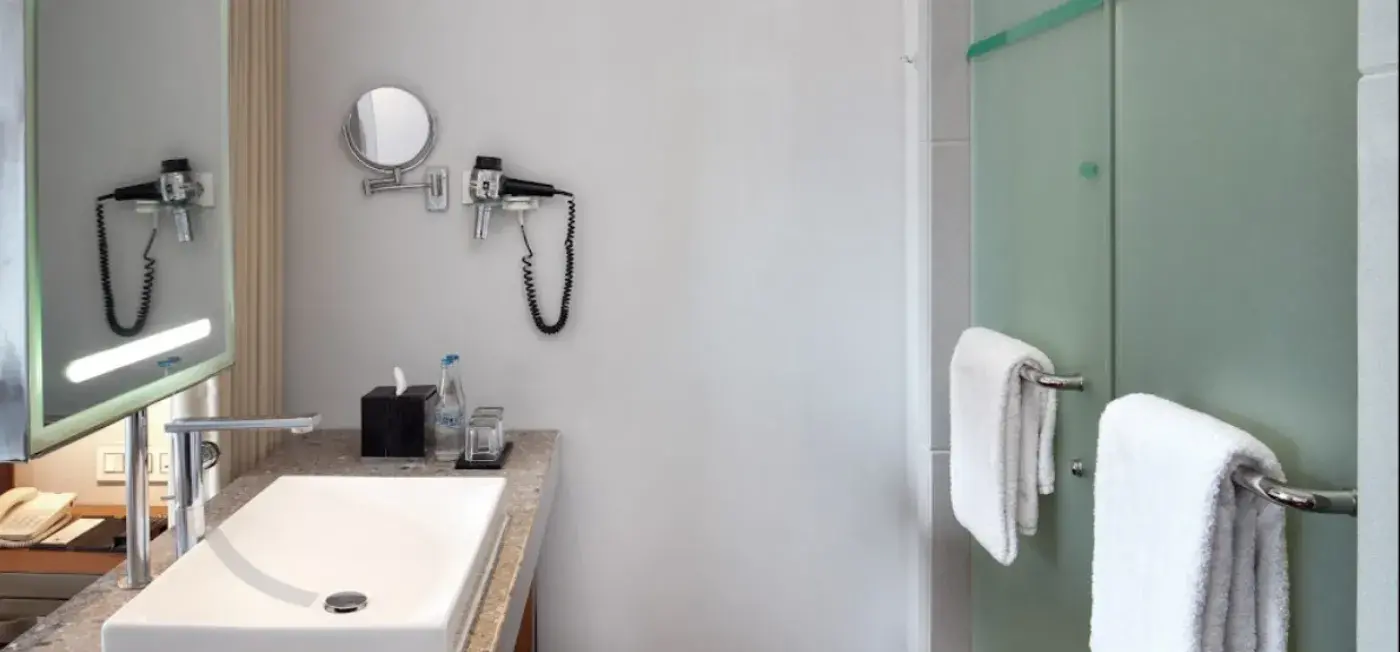 The hotel features a total of 159 rooms, each of which is elegantly decorated and furnished with modern amenities to ensure the utmost comfort of guests. The rooms are equipped with air conditioning, flat-screen TVs, free Wi-Fi, and a private bathroom with shower facilities and complimentary toiletries.